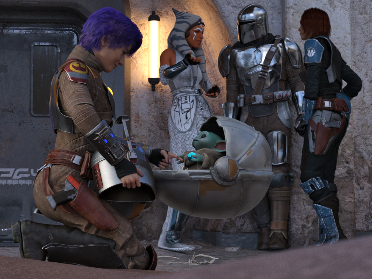 Worked on another pic the last 2 days of Sabine meeting Grogu. Pretty happy with how it turned out...would love it if there was a more easily poseable Grogu...it took a while to pose him.
