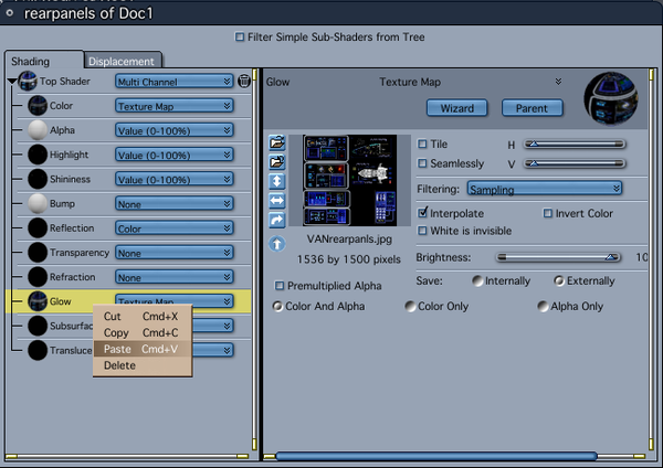 A great example of what I was talking about in my previous post is the Vanguard space ship sold here at DAZ. When loaded directly into Carrara, none of the monitors appeared lit. The image maps were there in the color channel of the shader, but no glow. I copied the image maps for the monitors from the color channel and pasted them into the glow channel.