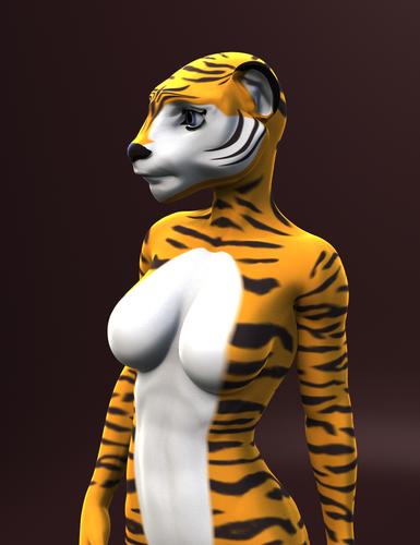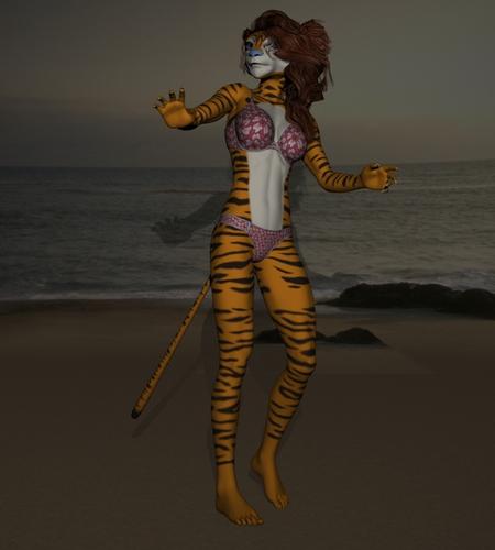 Parla inglese? I have a question for Muscleman. Is TeeGra supposed to use the elite human surface shader/sub surface scattering? I thought she used the default skin and the plastic lighting model. I'm trying to make her skin/fur less shiny. Maybe I should turn down the specular settings.
