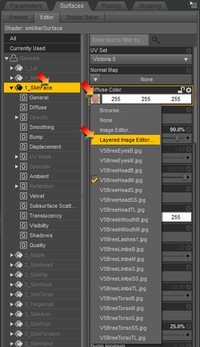 That is the product. I don't mean to be dense, but I've never used anything like this. So, in the surfaces tab I see the part I want to apply (the head) and I see a list (general, diffuse, opacity, etc). I don't know what "LIE" means. I also don't know how to add the overlay as a new layer.