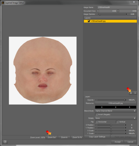 2. Zoom out until you see the full texture in the LIE and then click the +