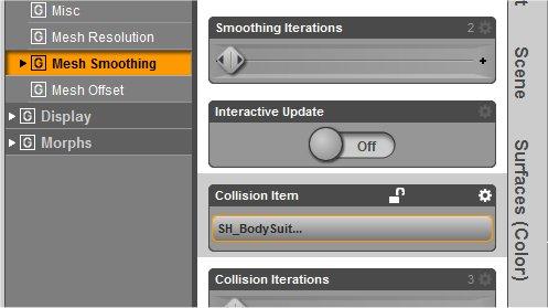 You want to go to the scene tab then the button on the top right corner go to edit and Apply the Smoothing Modifier to the clothing item you have fit to the Genesis figure (image 4) Then go to the Parameters tab and change the Collision Item to the clothing item under the clothing not the genesis figure (image3)