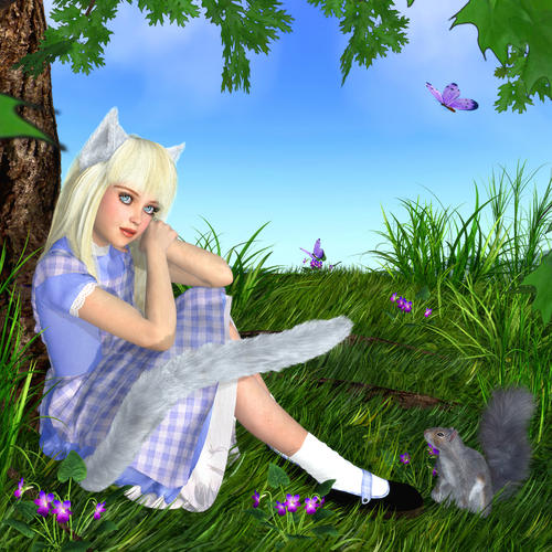 You guys see this? LAMH for the genesis hair, the genesis catgirl ears and tail, for the grass, and for the squirrel! :D