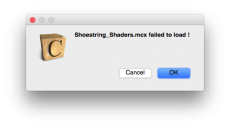 I guess this means Shoestring Shaders is broken on the Macintosh platform, and since it is now open source and unsupported it will never work again unless an independent programmer takes an interest in fixing it.