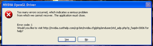 Recently updated my drivers - and Hexagon has started to fail: screen flashes blue - then the programs falls over. I receive the (attached) message.