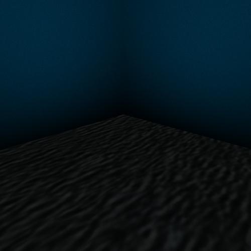My goal is to add a glow to the water. The glow will spread up the model and also supply small amounts of lighting along the banks of the water. I'd like the light to have a radiosity effect in order to light the rest of the cavern (or at least the walls) but I don't think that will be possible without amping up the intensity tremendously which would overpower the lighting on the model. So I am thinking I might have a low intensity of the water to keep the soft glow and shadows on the model, and I can use background lighting on the walls of the cavern, along with an overall light to help decrease the darkness/shadows in the rest of the image.