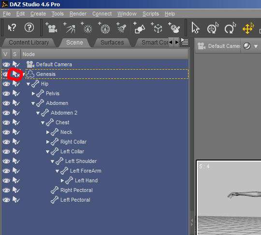Hello, I have three items in the scene. V5, a staff, and a dragon. After putting in the dragon and staff, I can no longer manipulate the V5 figure. I click on it and it only lets me select the whole figure, and not individual components like a finger. What happened here and how do I fix this? Its like she is locked in. Also I do click more than once on the V5 figure.