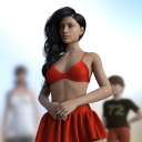 I like the red dress better, it's also fine that you change the light a little, because now the shadow on her face is not so strong.