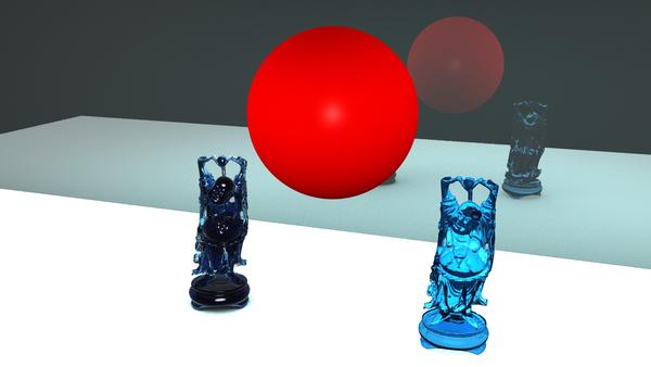I've rendered a test scene with 2x uberarea , 1 reflective plane, and 2 glass shaded objects (1 with Tofusan's on the left and one with DS default on the right) No problem with the glass but reflection and refraction is quite time consuming with 4 bounces.