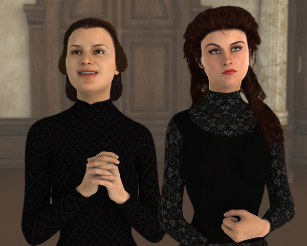 The dresses are very temporary as it's something basic that I'd only just created and imported from Hexagon. Obviously needs further work to turn into any kind of historical fashion.
