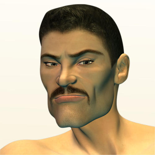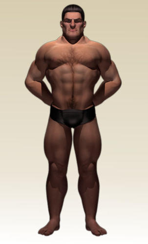 Here's the aforementioned static pose. He isn't too thrilled about having to stay still %-P Or he's showing an attitude because he's really embarrassed of his clipping lower res t-shirt?