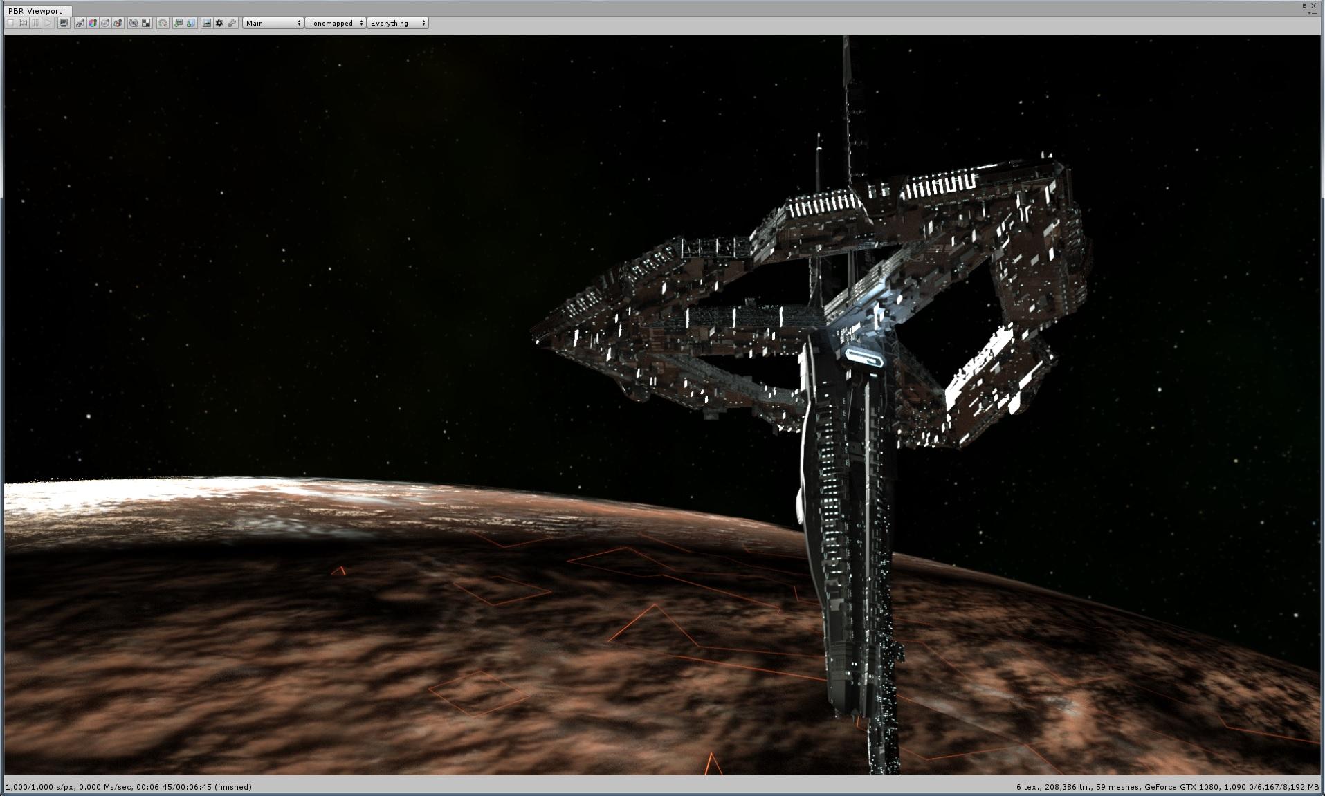 There is a freebie Orbital scene for Unity. On my computer with GTX 1080 it has rendered in 6 minutes 45 seconds