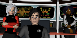 I finally retired in June and have been slowly catching up with many thing while closing down or moving others, and napping, never enough napping after the last decade (my work hours have been grinding me down day by day) and I'm finally starting to get back into working on my long-term toon projects. I'm starting out with some fun stuff, testing a few of the avaialble bridges and clothing for Trek and Trekish stories. Purely for fun, I'm testing some VP bridges and some Bluto and NVent3d outfits to see how they work with my custom toon meshes. Here's some test prints with the character meshes, first a little more semi-realitic, then dialing in more toon to test Bluto's outfits.