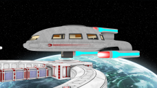 At the time, I hired modeller 3Dman25 to build some ships. The main one starts out as an impulse-powered system ship then gets three nacelles added to it to give it warp capability.