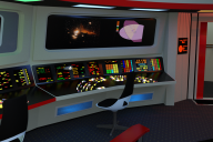 I actually started playing around with a "Cage 2.0" bridge - it was smoother than either the series or pilot versions, but more in the monochromatic range of "The Cage." At the moment, I don't know where all the files for it went, but I found one quick WIP render showing the helm and main screen, and you can see where I modified the workstation console a little.