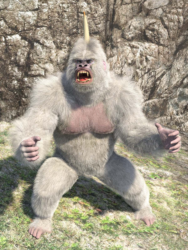 So found a suitable horn and attached it to Gorilla for G8M. Now I've had Mr Gorilla for quite a while but never got around to using it and here's the issue. When loaded with the dForce hair, the poor guy just looks... bald. But if I try and load the LAMH hair (I have Catalyzer) it just crashes Daz :(