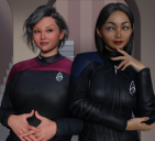 Introducing Captain Lia Seta (Bajoran) and Dr. Maya Devi (human, Chief Medical Officer).