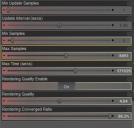 I have been doing what Zoombietaggerung says, but I push max samples as high as it will go and then just stop when I like the look of the image. I had one that would NOT render clear - I have no idea what was wrong with it, I had to delete the camera and make a new one from scratch, copying the camera view from the 1st camera would give me the same issues. I think I was using the betta version when I had this issue. I also sometimes turn on Architectural sampling and Caustic sampling. Architectural - if my reading is correct improves the accuracy of interior lighting, and reduces the graininess of the rendering and Caustics are light patterns that occur when light illuminates a surface via specular reflection or transmission and caustic sampler improves the accuracy of this type of lighting.