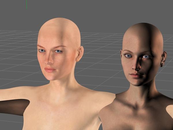hi, I am a traditional media artist and am experimenting with using 3d software to develop compositions. I recently bought the Victoria 6 for Genesis2, which looks quite impressively realistic when rendered, but I am wondering why it is not modelled like the other figures and props while building the image? It looks as though there is a strong ambient light at all times. I can still detect the direction of the light sources, but it is not as obvious as for the previous figures, which seem to be illuminated only by the lights you insert into the scenes, which I find quite useful. see image for V6 versus V5