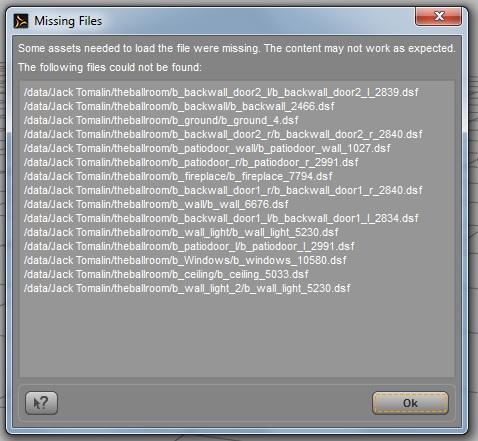 Oh, that's clever. The Ballroom is a very old model (but still pretty good), and it's all Poser-only; no D|S files at all. The Affable set includes a D|S .duf preload scene as well as D|S and Poser files, but no D|S /data/ files. So the D|S scene won't actually work unless you save the Poser preload to create these /data/ files. I think. Alternatively, load the Poser preload and apply the D|S materials to all the bits and pieces.