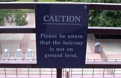 Also, If you're drunk enough to climb over the balcony railing, you're too drunk to read the sign.