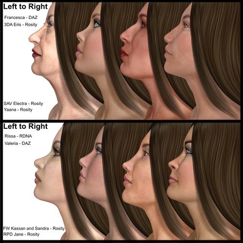 I am attaching some of my favourite ones below (will post again when I get a chance to create more images with more profiles). I used the same texture on them all to highlight the difference of just the morphs.
