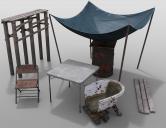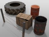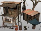 This set has 38 props and 4 preloads to help you build up a post-apocalyptic scene. The wooden shacks have all walls hideable and the windmill is fully rigged.