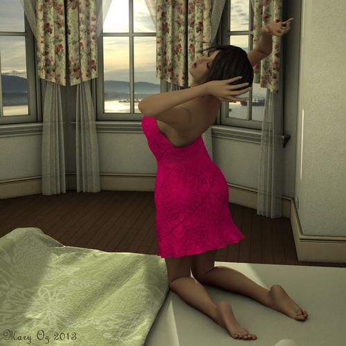 As for your render, that's one lovely location to wake up and enjoy a stretch! What an amazing view she has from her window. I think if I were her I'd just sit there a while and enjoy the sun that's streaming across the bed.