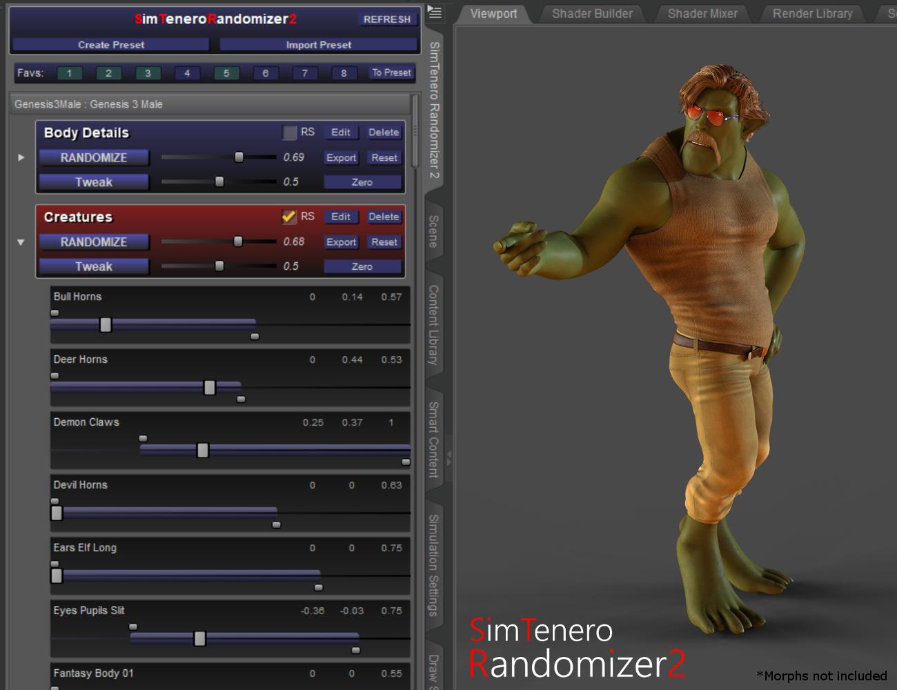 - The way presets are created and used has been completely rethought. Presets are now very central to the way you'll manage big libraries of morphs. It was always possible to save and load presets in the original, but 2 gives you access to all of those presets at once. This makes it super easy to, for example, randomize parts of the body and face independently of one another.