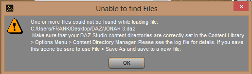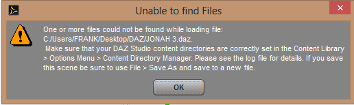I am not sure what info would be required to help me so I will provide what I think is important. DAZ is installed ON my new PC. All of the content is installed directly on my PC also. At first I tried access and loading the old scenes stored on an external drive. When that did not work I transferred a select few of those scenes directly onto my new PC and attempted to load them that way. I did create a path in the directory to that particular folder, hoping it would help. I still get the same error message.