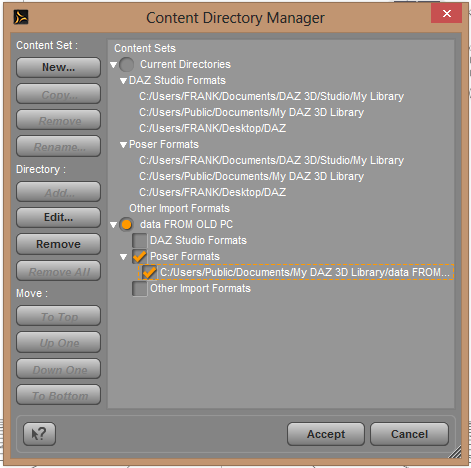 Oh and are you saying the path should NOT be nested IN the little Daz Studio Formats section, but have it's own little section between the Daz and Poser sections in the content directory?