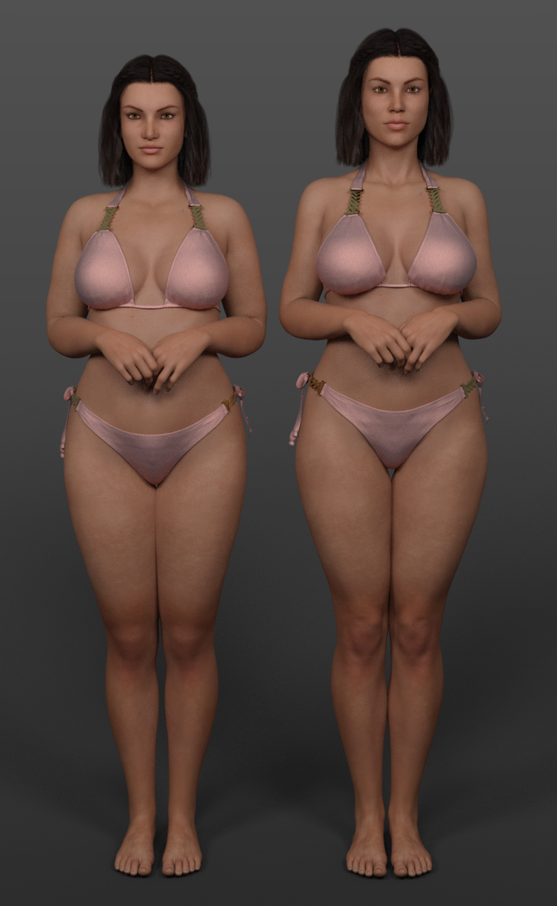 Here she is with her default skin settings. Render time 3 minutes and 49 seconds: