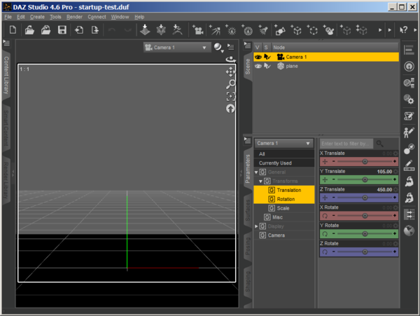 . Setup and save a scene containing only what you want to appear everytime you start DS. For example, add a camera, name it, set camera parameters to want you want as "default" (specifically pointing straight ahead, or whatever)... perhaps add a commonly-used figure or two (if you almost always start by adding a figure - if not, then don't). Remember that these will be the settings you _always_ get, everytime you start a new DS session;