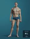He features HD sculpted face and athletic body, Genital morph, muscle shape details, photo-realistic skin, and several colorful eyes options.