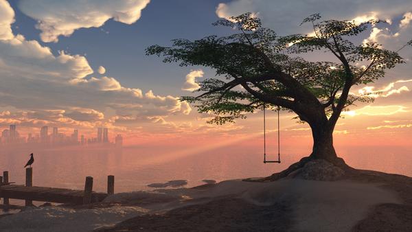So to test things I made a quickie in Vue 10 Esprit. I only spent one day making this, posted it on DA yesterday and then last night I rerendered after applying some Transparency effects on the leaves, tweaked the GI Gain, Sky light Gain and set the light quality to .60. I did try 2.00 but this poor thing struggled. Still a little grainy in the sky and clouds but I can live with that..