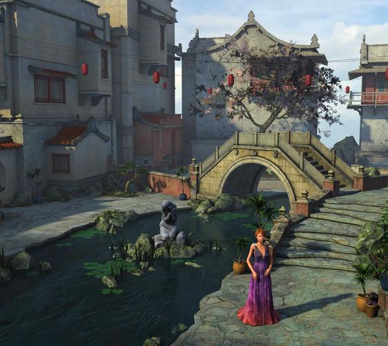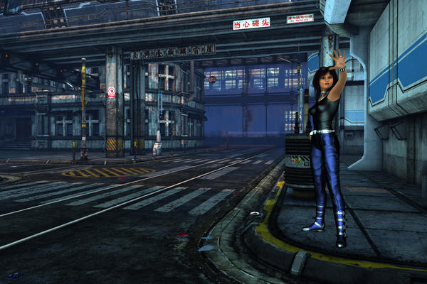 Hmm. Our friends hang around the same neighborhood. :0 Straight out of DAZ, no post except shrinking a little in size. Three ambient lights, though you can't really see the ones that are parented to the the light posts, one distant light tinted orange, and I pulled out the atmosphere cameras again. It's an awesome combination. ;)