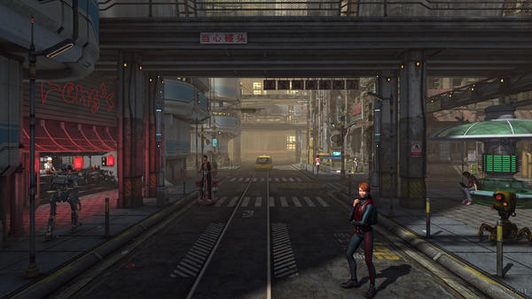 This is an old Urban Future 2 scene that I did a while back. I thought it might benefit from the new ambient light. There are 4 point lights at various places and 1 ambient light. I set the light radius to 100. No postwork.