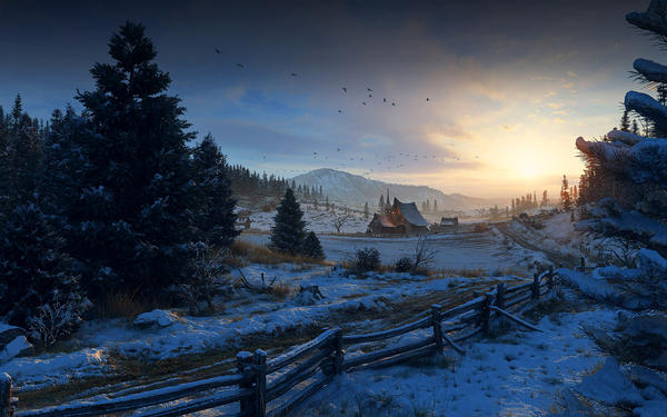 Could one of our awesome Daz3d artists create a fresh, new, huge, winter valley and mountain range scene for Daz Studio Pro? Like in this image called, "Christmas Valley". If everything could be laid out beautifully in snow like this image, with a choice of of different sky domes, then I and others could add in whatever animals, people, wagons and other props we would like. You could even have a summer scene option to purchase as well.
