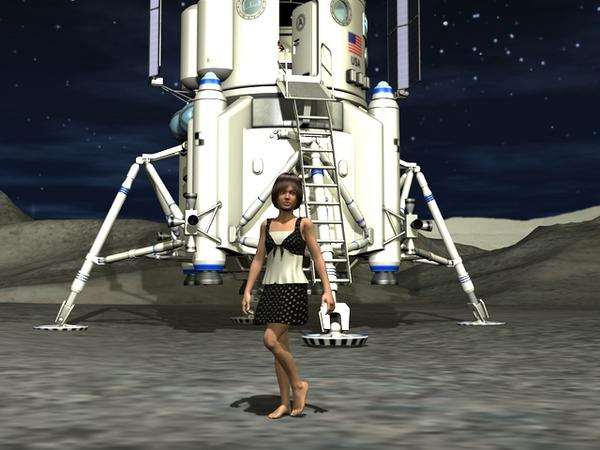 Here is Laura on an asteroid. lol The spotlight is too bright. I forgot to lower the spotlight from 80 to something lower. I did lower the distant lights to 50% intensity. I need to work on the lights and camera angle. I'm going to install some simple backgrounds and furniture to work on some old scenes.