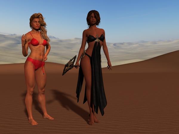 Briallen without EHSS and with EHSS. Too bad we can't see their makeup or nailpolish. I'll play with the poses after I install the updated Genesis 2 starter essentials.