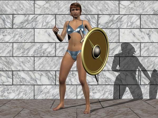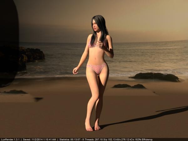 Distant light verses IBL. Since I can't afford the new metal armor in the store, I put dressed Genesis in a bikini. All I did was apply the metal shader to the bikini.