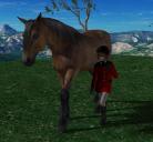 Here is the render that I was working on.  A girl is in the shadow of a bay horse.  Yes, the girl is supposed to be in the shadow.  I might change the lighting tomorrow.