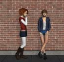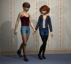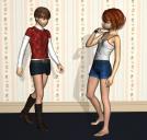 I might as well complete their outfits. Now I need to adjust the lighting so that the characters' faces aren't so dark.
