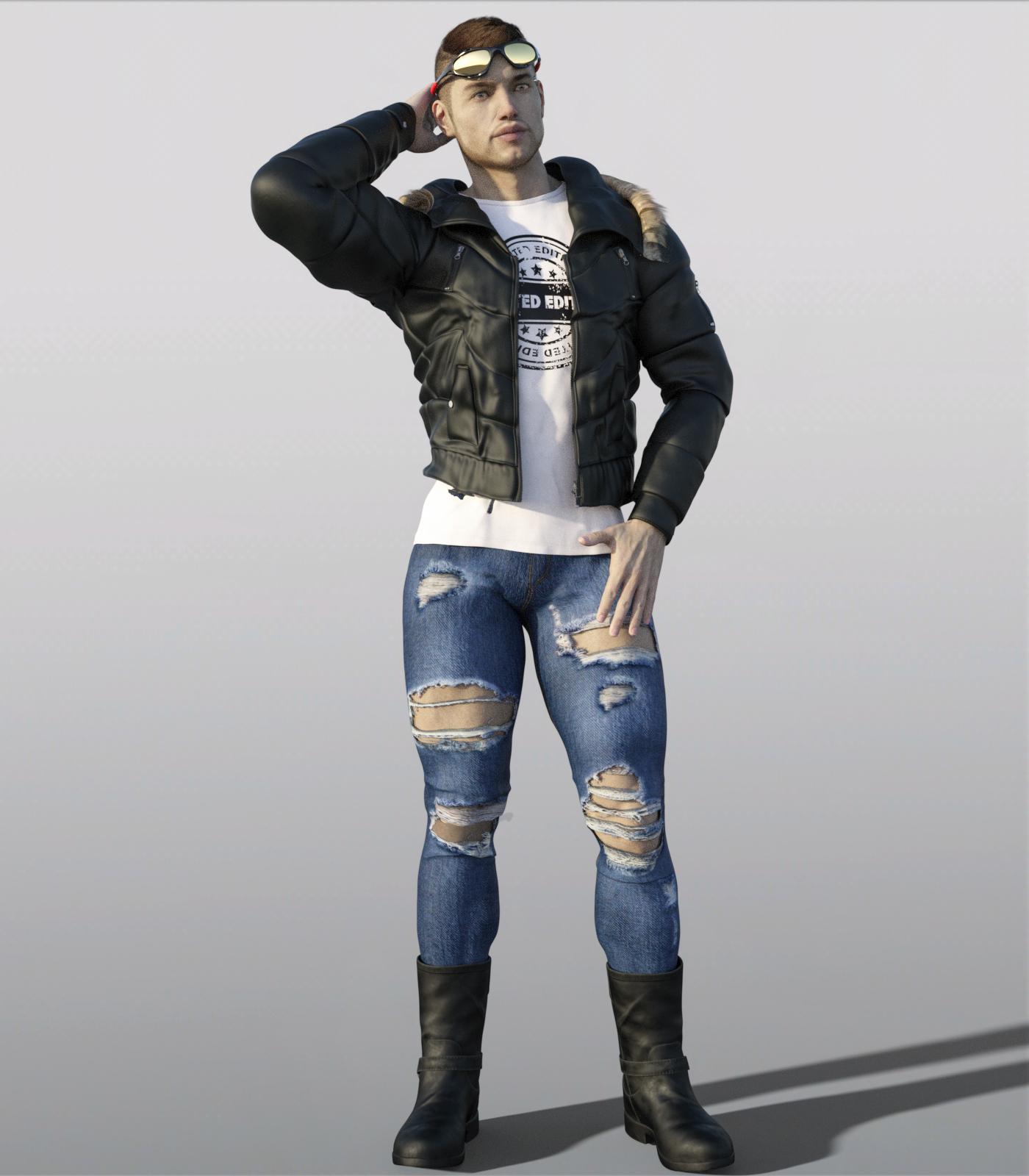 I really like the jacket, it has open and close morphs. The pants are painted on, but might work if you need a ripped set There was no good shirt, and the boots, were very feminine, so I layered the jacket and jeans with the Dforce biker outfit. I think there is kitbash potential with this set. Especially if you are looking for a nice winter jacket.