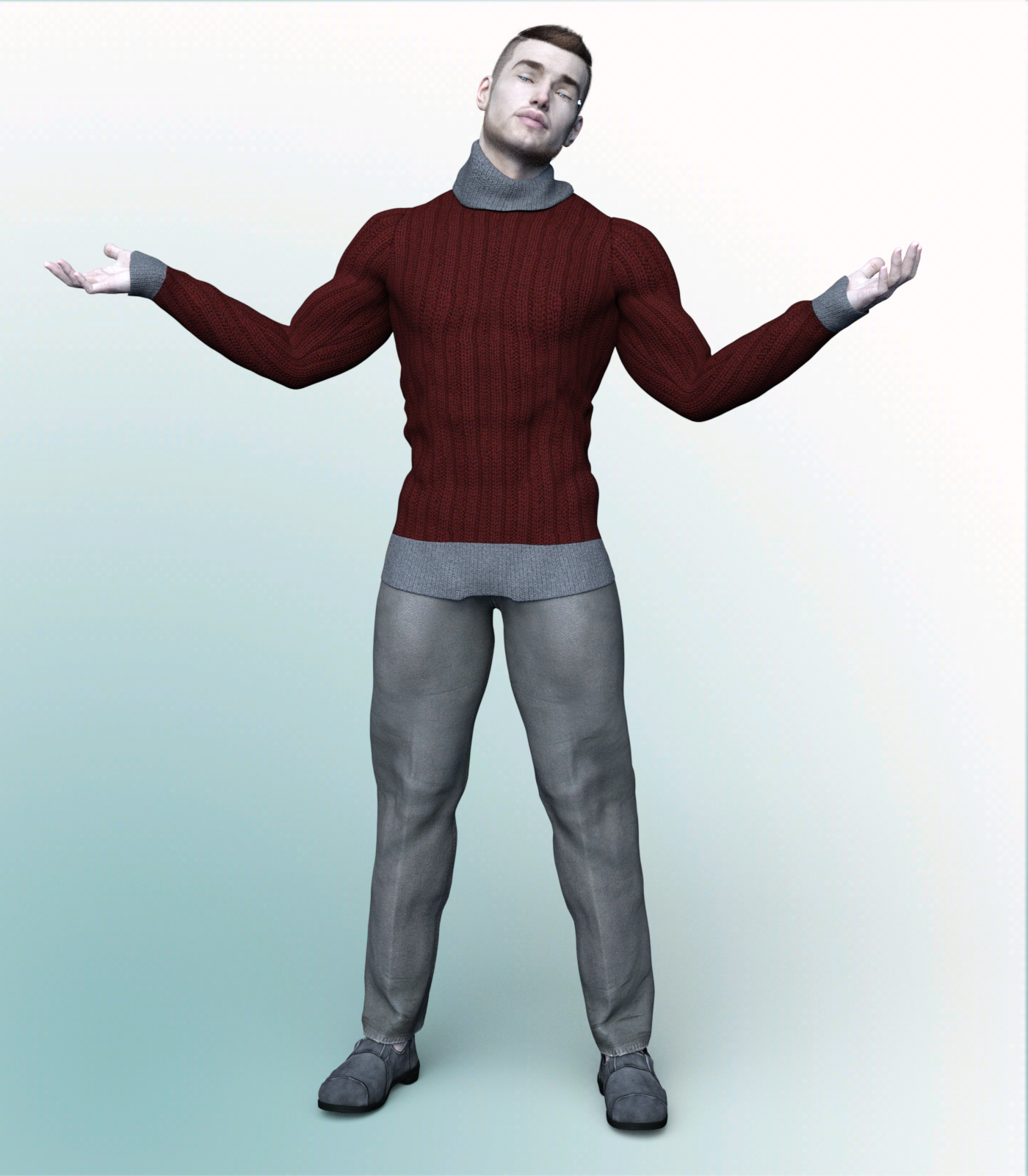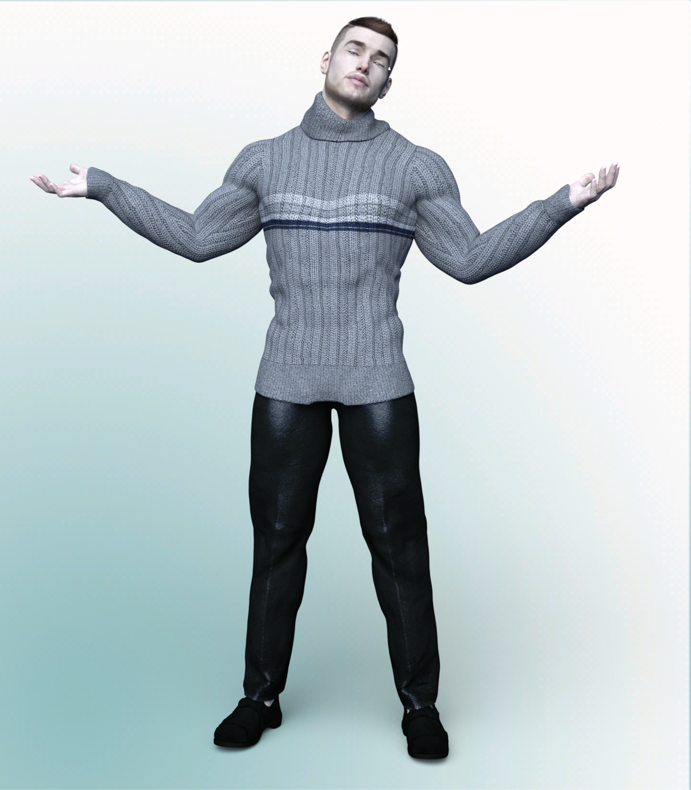 Toon Super Spy Outfit This outfit was on sale today for 5.00 with a qualifying purchase. I passed it over initially because its for a toon that looked like Gru, and I don't render extreme toons, but it fits nicely to G8M. The jacket has super wide collars and doesn't open, so I didn't bother with it, but the turtleneck underneath is very nice, and I like the length of the sleeves.
