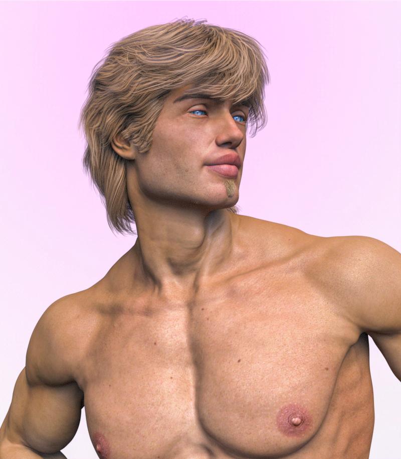 First up is the Varun hair. It has that casual feathered fullness popular in the 80's but includes some very large bushy sideburns. I rendered Boyd with reduced sideburns, but they are still large, and sort of look imbedded to me. I wish there was a way to pull them out, and perhaps add some roots so they don't look like stray bangs stuck down there.