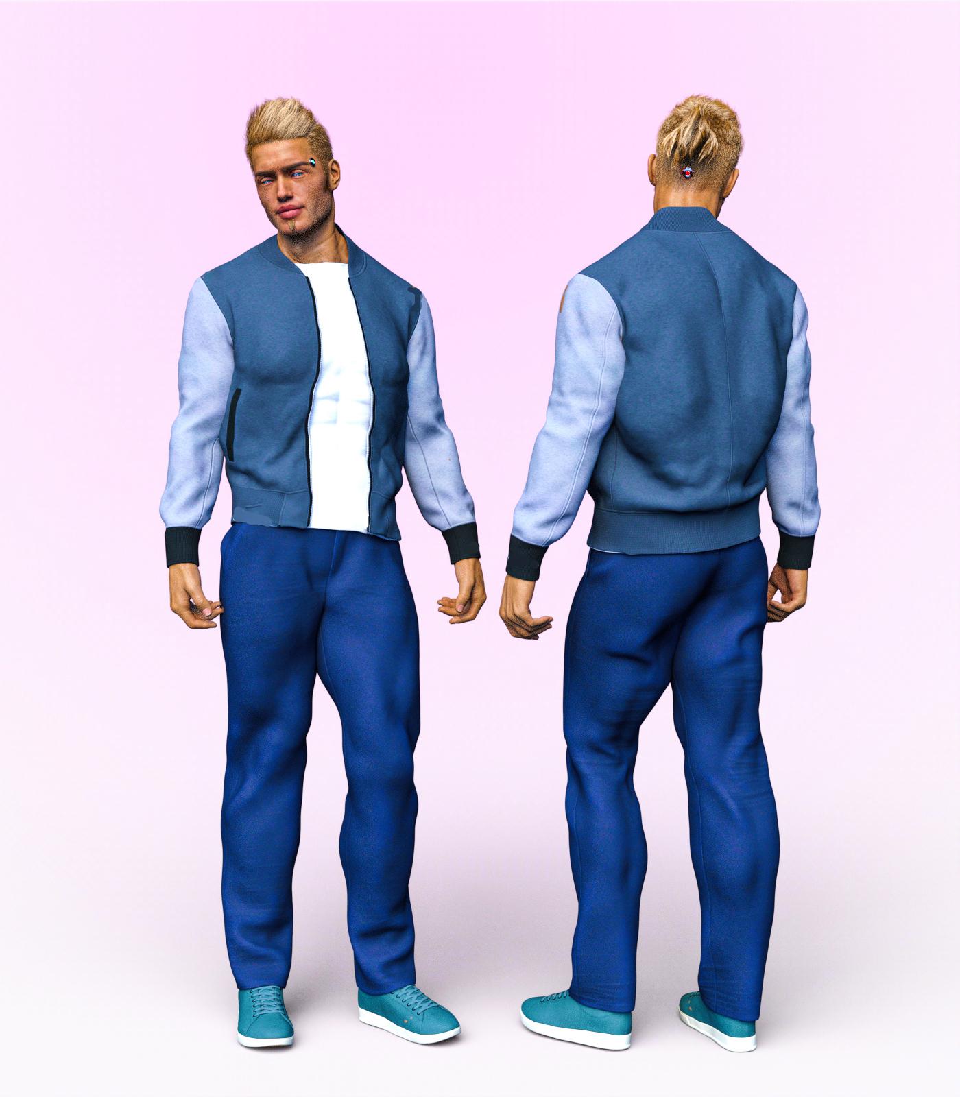 So in the interests of science I went through my runtime of G8F clothing (I only have a few contemporary pants in there) And here are the pants from the Manhattan outfit and Manhattan Detective autofitted to the boys, with morphs applied using fit control. I do have to say, that there is a lot more detail on these pants for women, than there is on pants for the guys. Just look at the pants for the basic bomber jacket outfit.