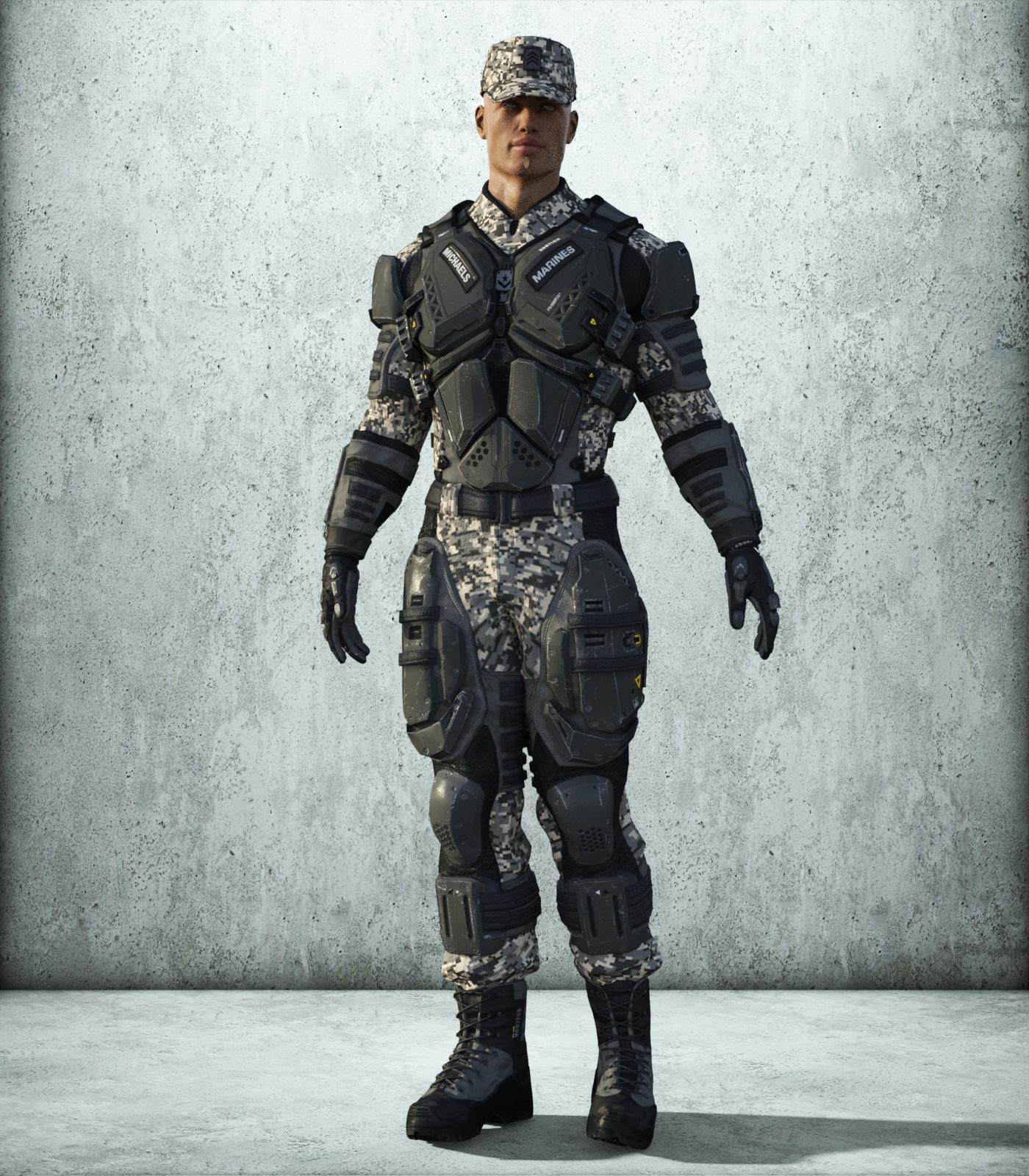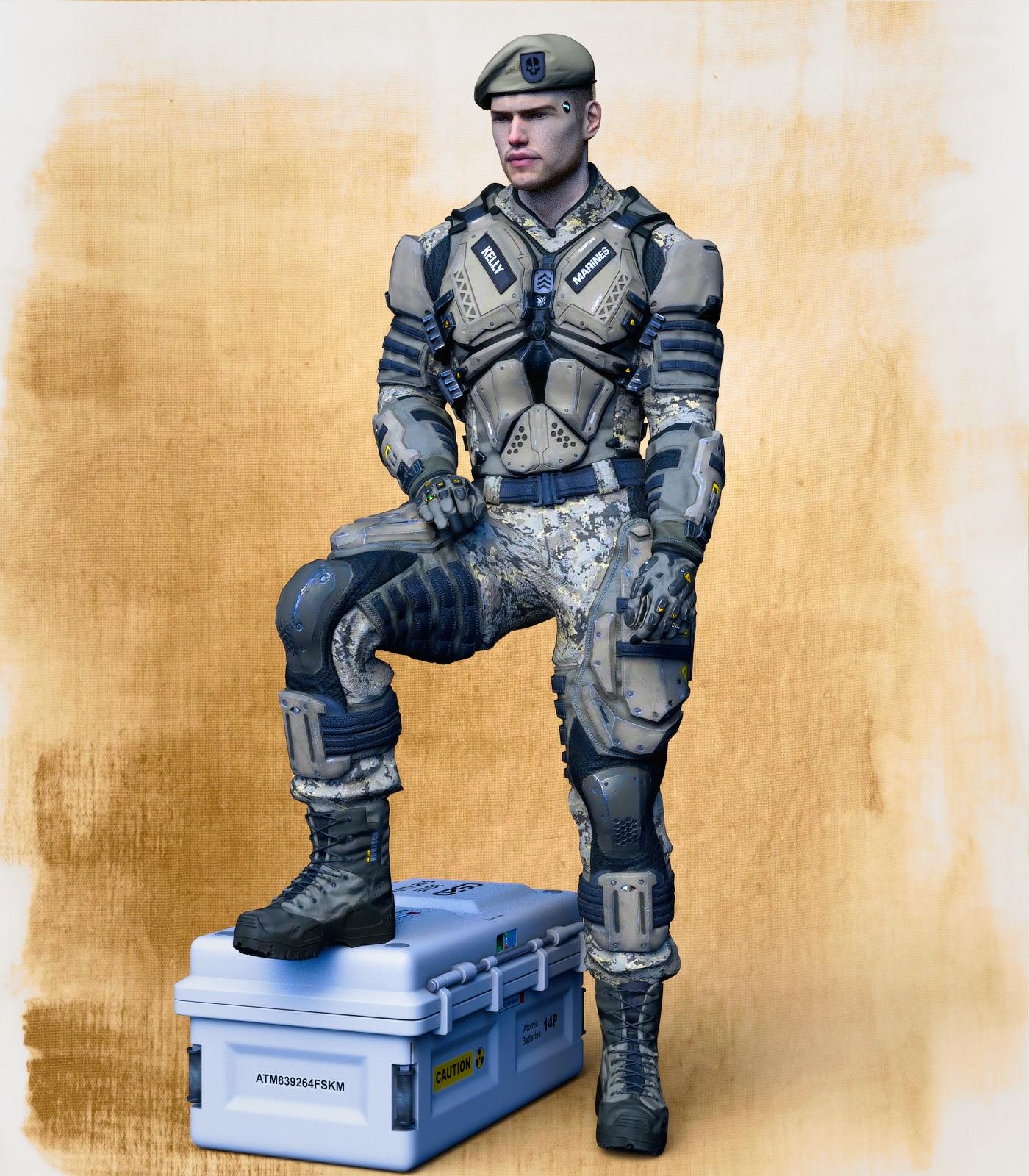 Here is Owen in the new texture expansion of the Atlas Suit. The texture expansion includes a beret, a patrol cap, several different textures, and chest insignias as well as insignias for the caps and military branch.