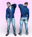 These textures are photo-real and are on a single bodysuit style mesh. They render quickly, and I think the pants in particular look pretty good.