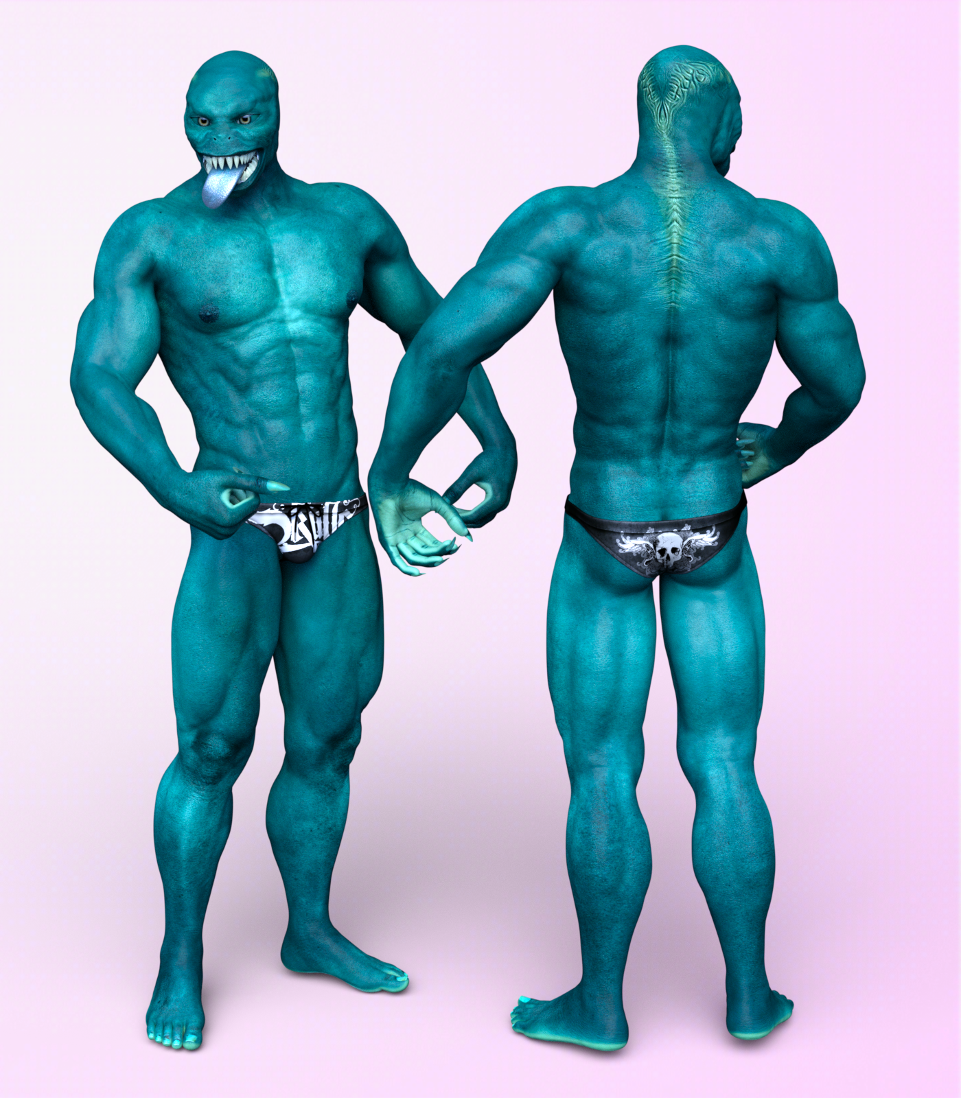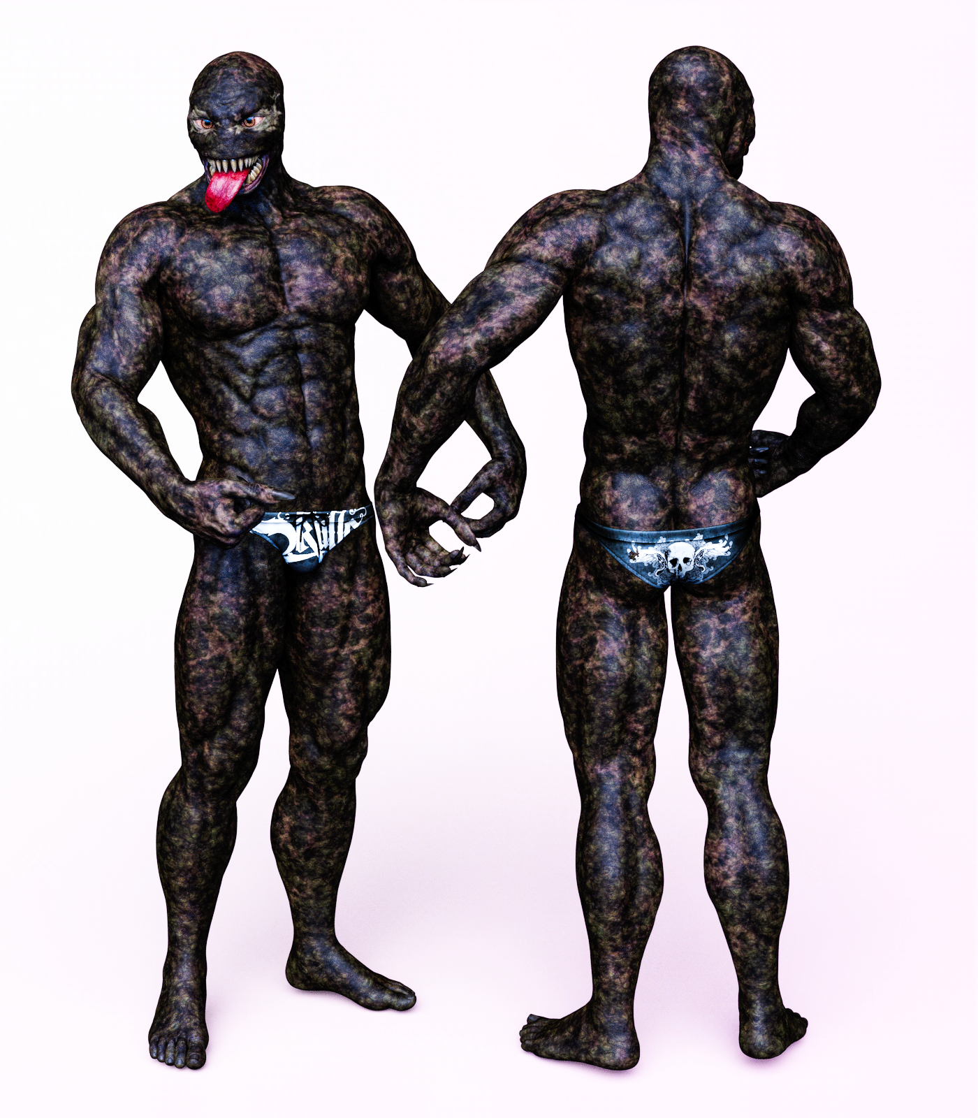 I recently got to mess around with RawArt's parasite character. This is a fun model, with a lot of personality. I really like the tongue. His original skin is the dark one. The blue Parasite has Ozia's skin. He takes the skin of other characters really well. Tongue Control, really helps make the tongue really work. So if you buy this, you'll want something to give more versatility to the tongue and a tongue control product is your answer.